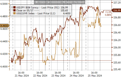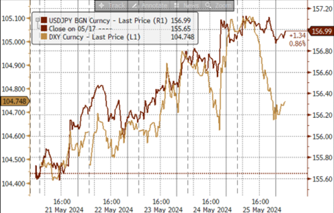 ►上周(5/20-5/24):温和美元背景下、日元仍旧偏弱