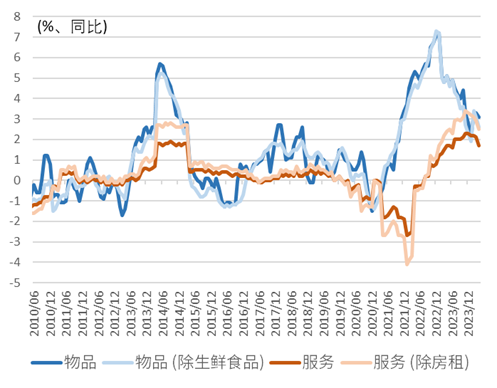 图表16:日本物品与服务通胀的同比走势