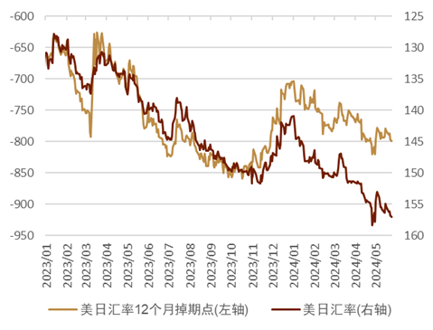 图表14:美日汇率与美日汇率12个月掉期点的走势