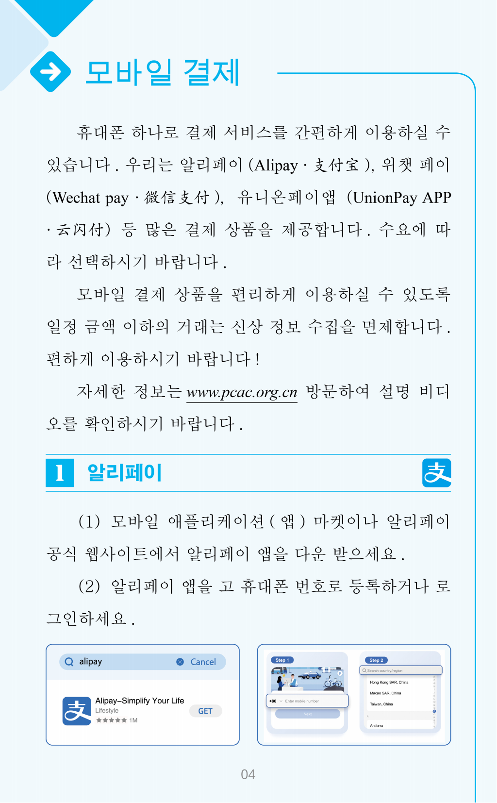 韩文版在华支付指南:중국에서 편리한 결제 방법 안내서