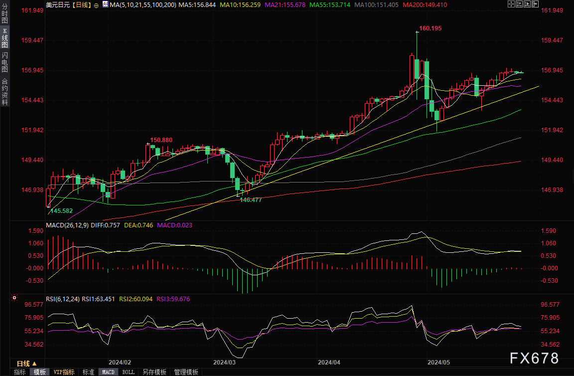 (美元兑日元日线图,来源:易汇通)北京市09:54,美元兑日元现报156.80/81。