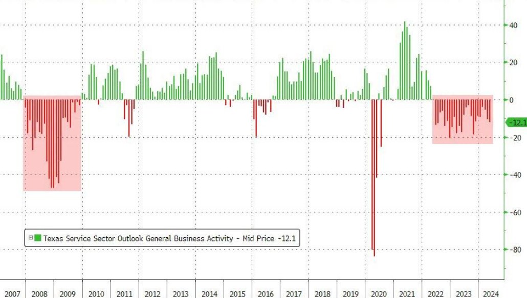 说到经济衰退,达拉斯联储又出炉了一项调查,结果比今年之前的所有调查都糟糕。