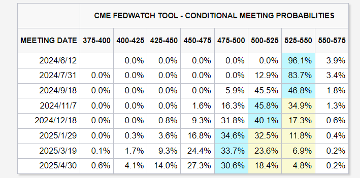 自去年7月以来,美联储官员一直将利率维持在5.25%至5.5%的区间,为20年来的最高水平。许多政策制定者表示,他们需要看到更多的数据,才能确信通胀将回到央行2%的目标。联邦公开市场委员会(FOMC)将于6月11日至12日举行最新会议。