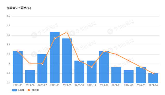 数据显示,加拿大的通胀率现为2.7%,自去年12月至今年4月持续下行,并且消费增长迅猛、劳动力市场仍然强劲,显示经济改善势头强劲。