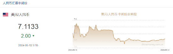 6月12日,人民币中间价报7.1133,上调2点,上一交易日中间价报7.1135。