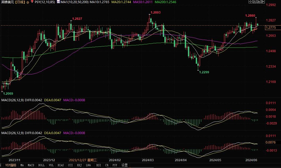 英镑兑美元日线图北京时间6月13日13:54,英镑兑美元报1.2775/76