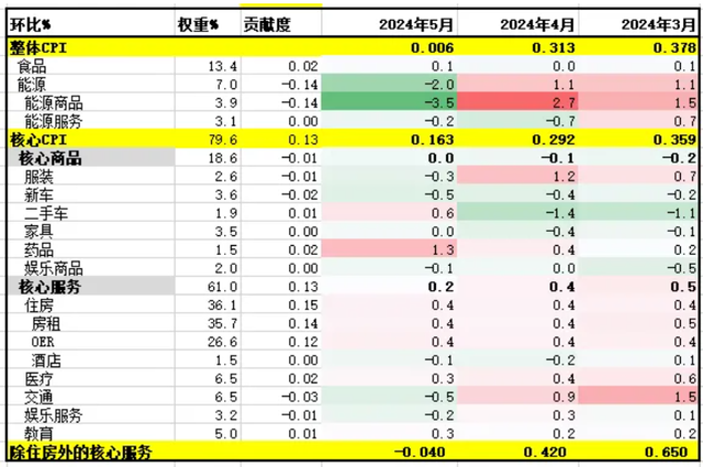 5月美国CPI细分项