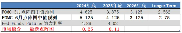 5月美国超级核心服务通胀环比1. 点阵图整体上移。2024年点阵图中值从3次上调至1次:4人认为不降息,7人认为降息1次,8人认为降息2次;2025年点阵图中值上调了1次25bp;长期中性利率也上调了25bp。