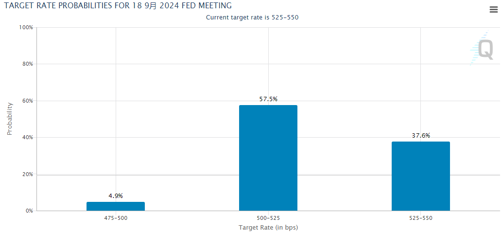 当然,就首降窗口而言,目前业内仍认为9月有不小的概率能够实现降息。芝商所的美联储观察工具显示,9月降息的概率约为62%。