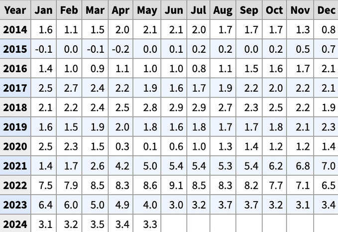 昨夜的数据确实是又一份支持下半年降息的数据——美国劳工部公布的5月CPI报告显示,四组总体和核心的CPI同比和环比表现均低于了预期。其中,美国5月CPI环比持平,预期增加0.1%;同比上升3.3%,也低于预估值3.4%;剔除能源、食品的核心CPI环比上涨0.2%,预期增加0.3%;核心CPI同比上涨3.4%,预估值为3.5%。