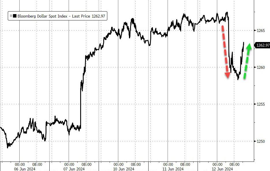 美元在周三收盘虽然走低,但在鹰派点阵图发布后扭转了之前CPI发布时的大部分跌幅。