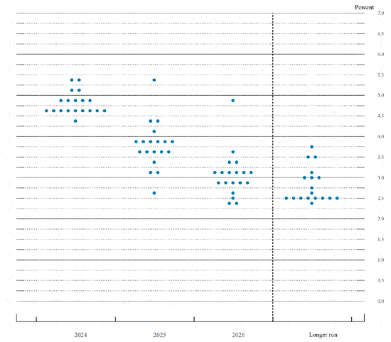 过去一段时间,美国的数据波动较大,导致市场在降息预期上也莫衷一是,来回摇摆。就仅仅在此次会议前的两个数据非农和CPI上,分歧就尤为突出。5月非农大幅超出预期让市场意外,而5月CPI尤其是核心CPI则比市场预期更快的降温。在此背景下,6月FOMC美联储会如何表态,尤其是“点阵图”如何调整,就成为市场关注的焦点。