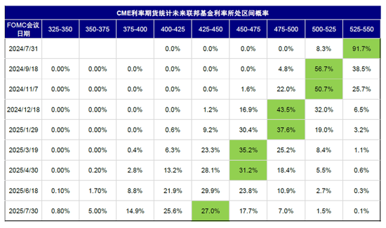 图表:CME利率期货隐含9月开启降息,全年降息两次