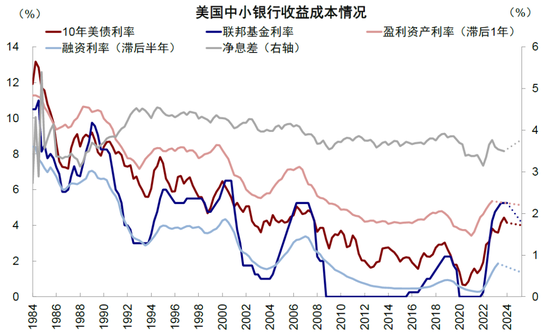 图表:考虑利差压力和金融风险,美联储可能仅共需要降息100bp左右,从5.3%降至4.3%