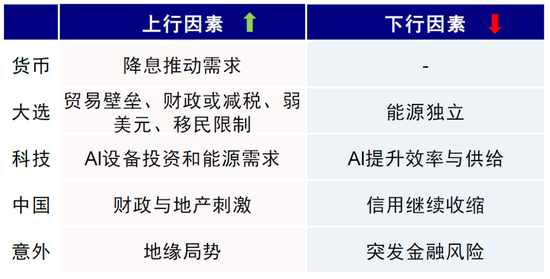 ► 美元:无大幅走弱基础,102~106区间震荡。虽然美联储可能开启降息,但美元走势并不单纯依赖美联储的政策操作,外围欧央行更弱的经济基本面和更早的降息周期反而支撑了美元;更何况这一轮美联储降息后美国经济基本面可能修复。但值得注意的是,需要关注大选对汇率的潜在影响。