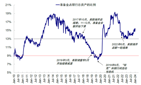 图表:目前准备金占银行资产的比例接近15%