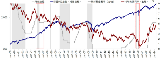 正式由于市场的抢跑和反身性,再加上此次降息原本就不会很多,使得我们在思考配置方向和制定交易策略时要提前半步且适度逆向思考。当前这种浅尝辄止的降息非常类似1995年和2019年的降息周期,换言之,降息兑现可能也是降息交易结束之时,这也是我们在下半年展望(《全球市场2024下半年展望:宽松已过半场》)提示宽松可能已过半场的主要含义所在。事实上,上周开启的欧央行降息也给我提供了另外一种降息的可能与“剧本”,即鹰派降息、非连续降息和市场毫无反应的降息(《欧央行降息:不一样的启示》)。