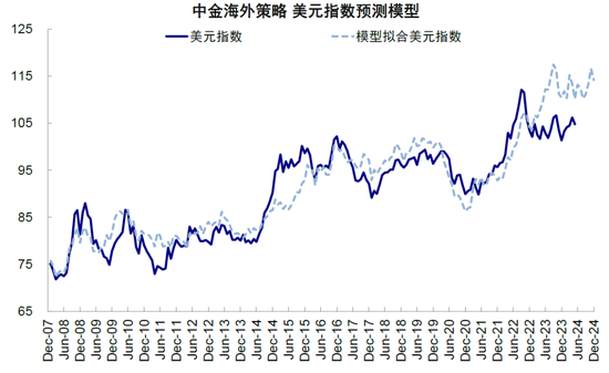 图表:我们根据全球美元流动性指标测算,到今年底美元大概率也继续在102~106区间震荡