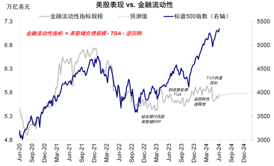 美联储缩表减速有助于缓解金融流动性收缩压力。根据我们测算,按照目前的缩表规模,同时假设隔夜逆回购在三季度按照短债发行量(2900亿美元)承接0.8%释放,目前的缩表规模(1800亿美元)可以被逆回购释放完全对冲;由于财政部尚未给出四季度短债发债规模预测,我们假设从三季度至2019年历史低位水平所剩余的逆回购规模在四季度释放50%释放(比三季度释放更少),缩表规模也基本可以被对冲。以金融流动性和美股指数的相关性测算,四季度初美股或从现在点位跌4~5%,全年剩余涨幅空间5%~7%至5500左右。