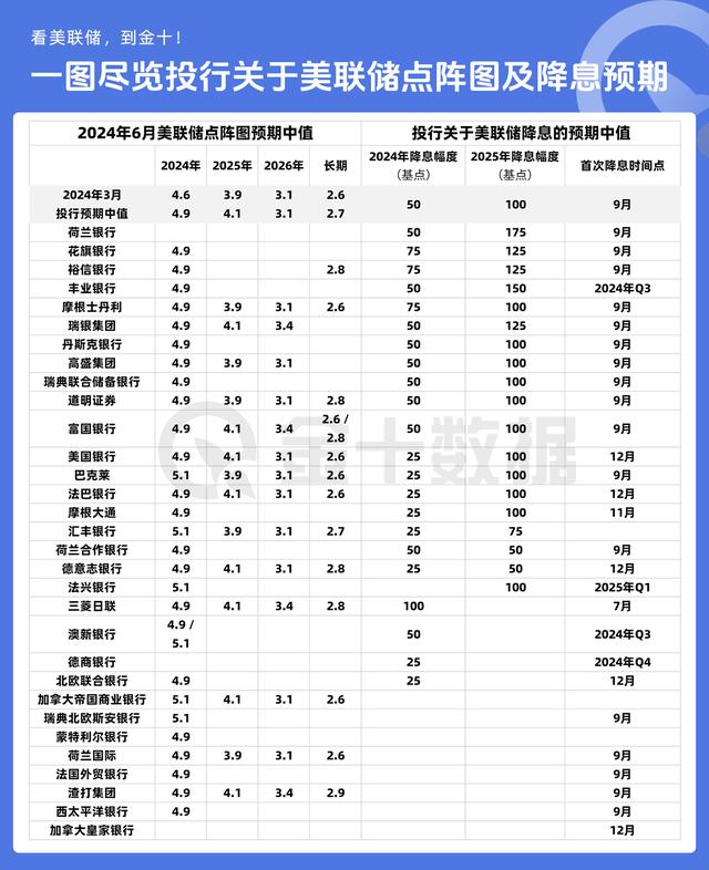 据统计,华尔街机构对美联储六月最新点阵图的观点如下: