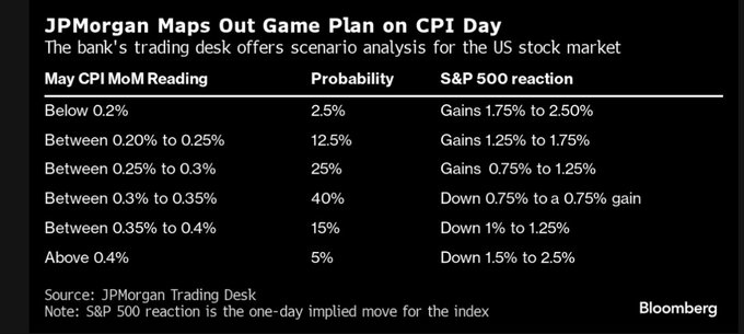 有关CPI数据对今晚美股走势的具体影响,我们在此前的报道中,其实已经陆续介绍过摩根大通对此的四类情境预估,感兴趣的投资者可自行回顾参考。