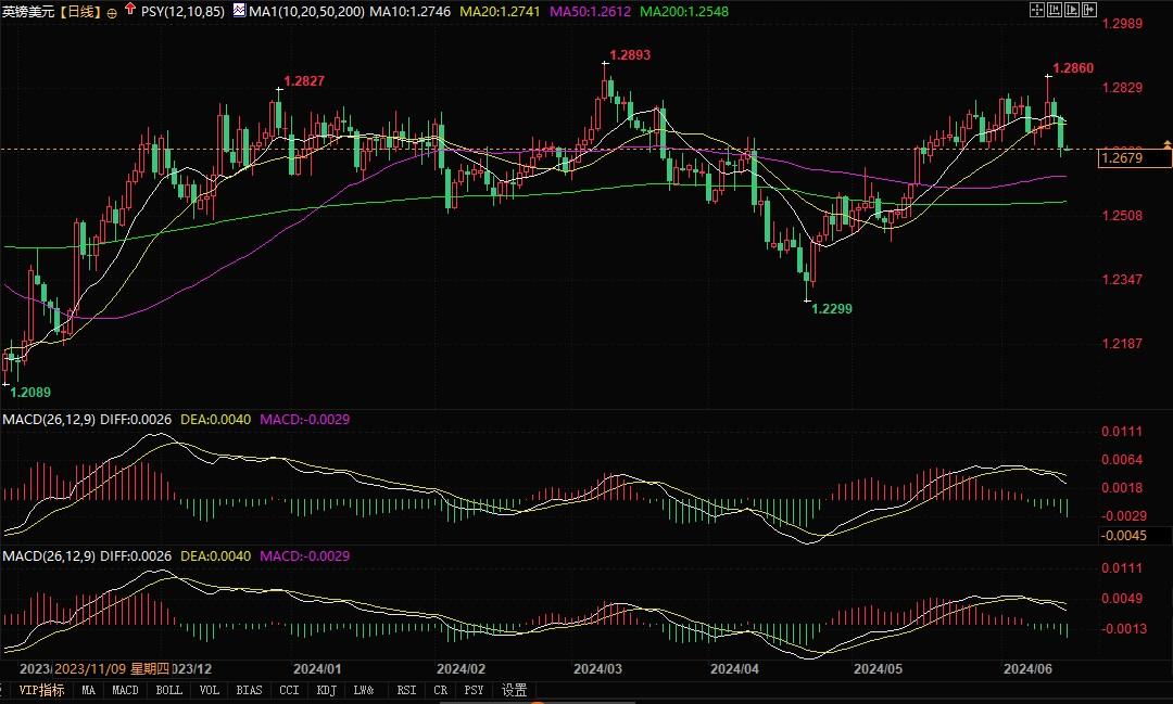 英镑兑美元日线图北京时间6月17日11:30,英镑兑美元报1.2680/81