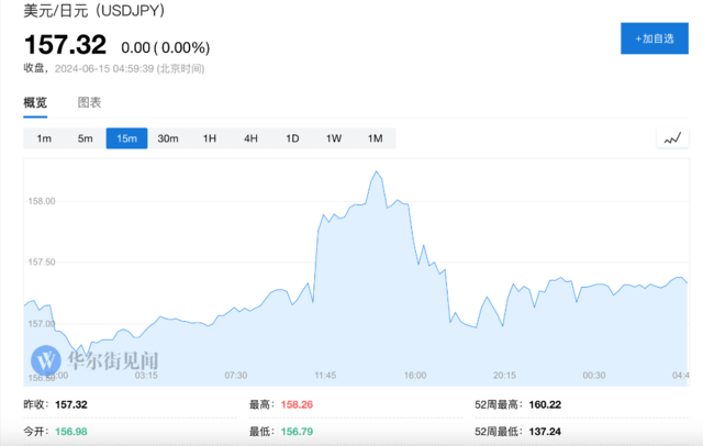 日元兑美元汇率在周五早些时候一度跌至4月份以来的最低水平,然后在植田和男召开新闻发布会后略有回升。截至发稿,1美元兑157.32日元。