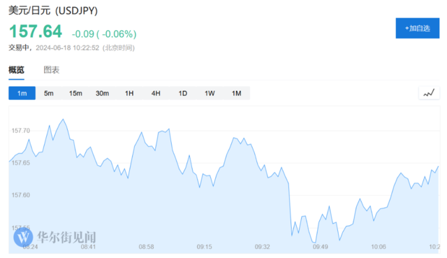 植田和男讲话期间,日元小幅上涨,美元兑日元走低后逐步反弹,报157.64 。