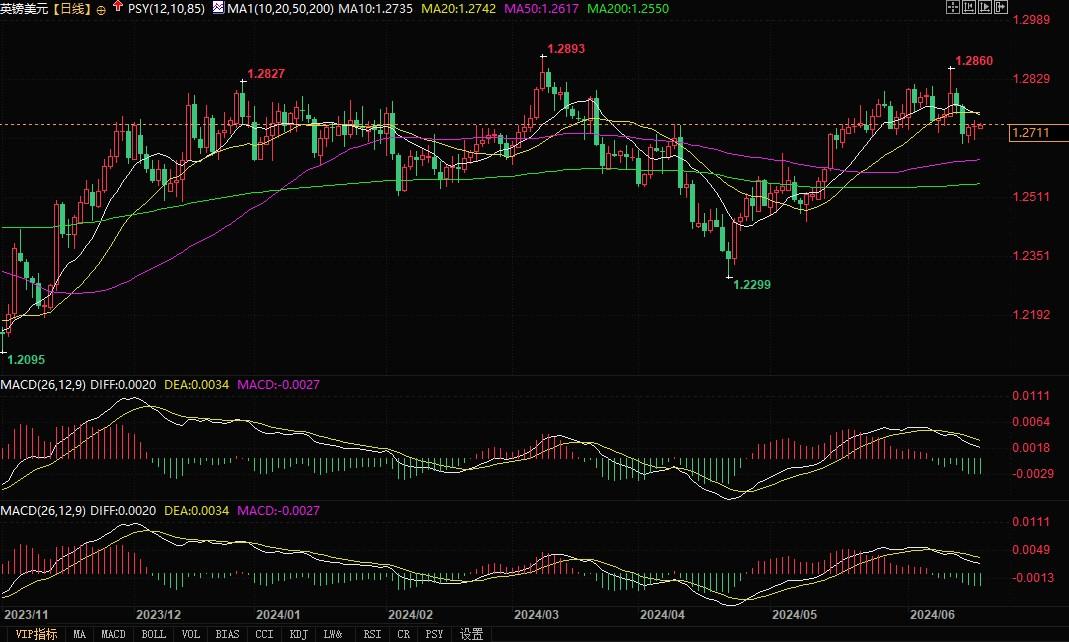 英镑兑美元日线图北京时间6月19日11:33,英镑兑美元报1.2710/11