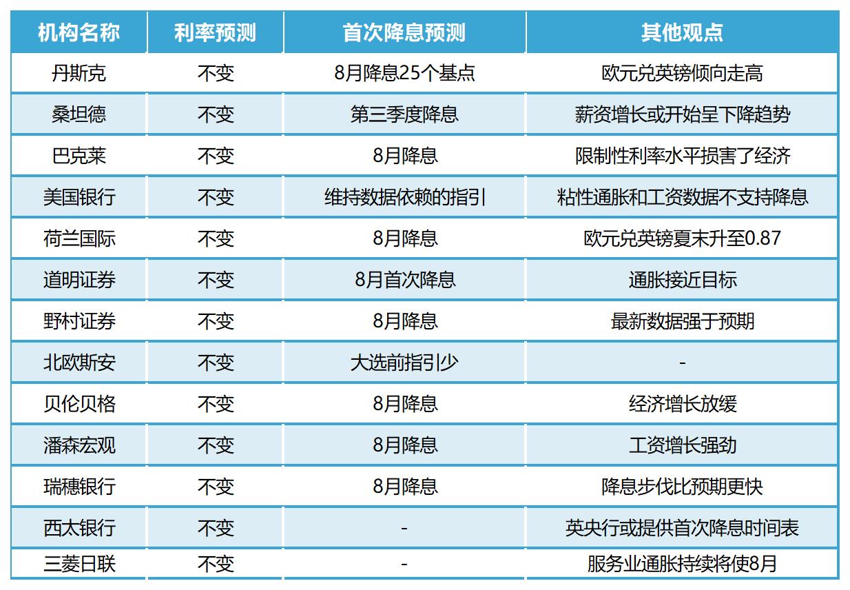 机构前瞻:英国央行7月按兵不动成定局 8月降息概率更大