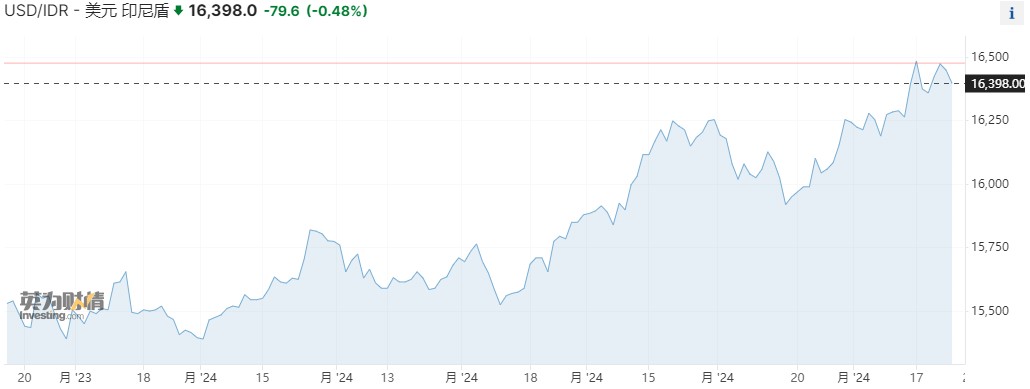 由于企业对美元的需求很高,以及投资者对即将上任的政府财政政策的担忧,印尼盾一直在接近四年低点的地方交易。截至发稿,印尼卢比兑美元上涨0.1%,至1美元兑16430印尼卢比。