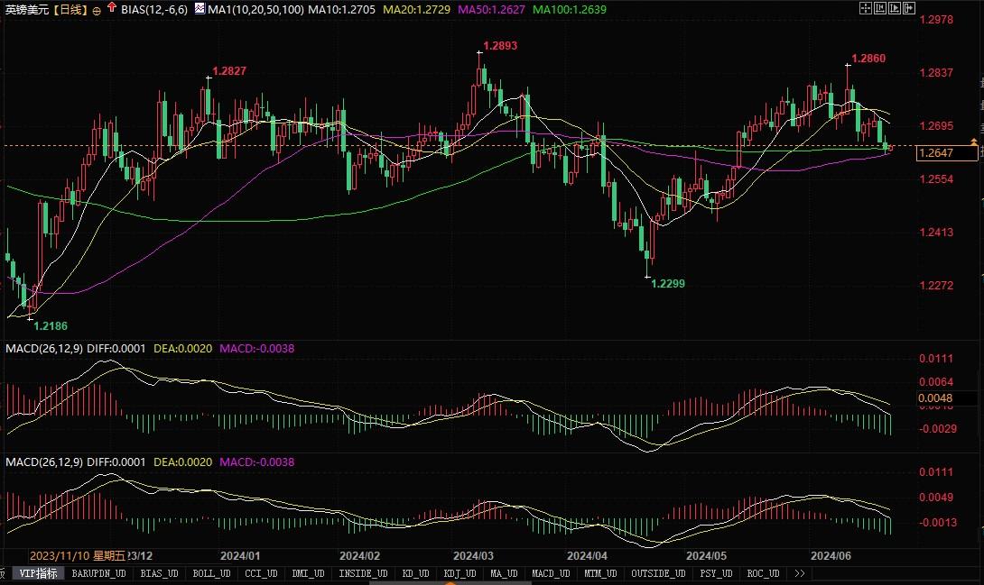 英镑兑美元日线图北京时间6月24日13:33,英镑兑美元报1.2646/47