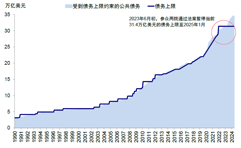 图表:2025年1月债务上限或将再度限制政府宽信用的空间