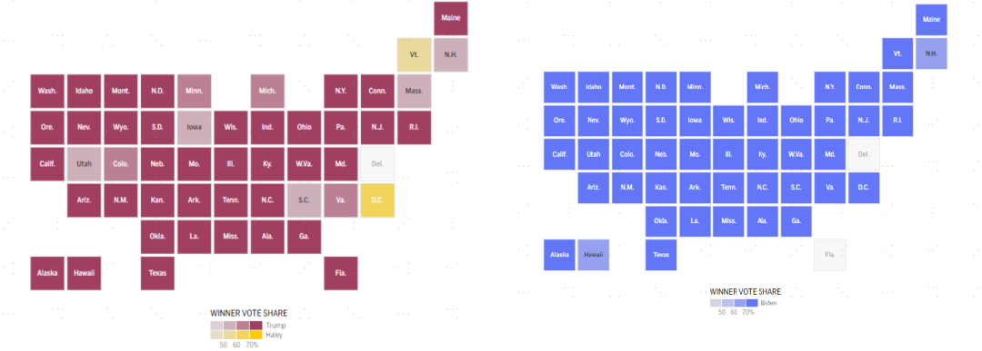 图表:党内初选结果已基本确定再次呈现“特朗普 vs. 拜登”的格局