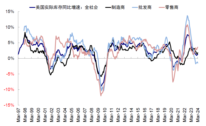 图表:欧美提前补库需求有所抬升,美国实际库存增速有所修复