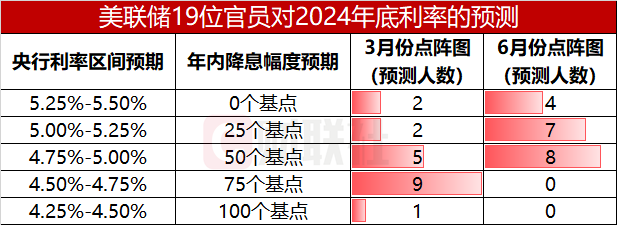 同时公布的经济前景预期显示,19名联邦公开市场委员会(FOMC)成员对今年底联邦基金利率目标区间的预测中值为5%至5.25%之间,即支持降息年内净降息25个基点,较3月会议的75个基点明显收缩。