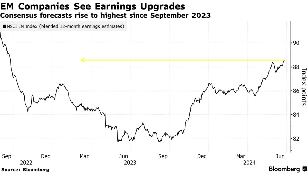 分析师们正在加强对新兴市场企业业绩表现的看法,因为高利率时代未来将让位于与美联储步调一致的宽松政策预期。分析师们普遍押注美联储可能在12月前开始降息,甚至一些分析师押注美联储首次降息时机位9月份,并且押注年内降息2次而不是点阵图所暗示的仅仅降息一次。