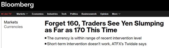 日本三井住友DS资产管理公司的首席投资组合经理Shinji Kunibe说:“如果政府干预 ,日元可能会走强至150下方,但长远来看,日元将继续向170贬值。”