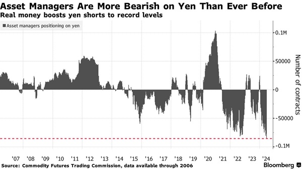 资产管理公司也持看空态度。美国商品期货交易委员会(CFTC)周一公布的数据显示,截至6月18日当周,他们大举做空日元,空头头寸达到2006年以来最高水平。数据显示,对冲基金也加大对日元的看跌押注,保持在近期纪录附近。