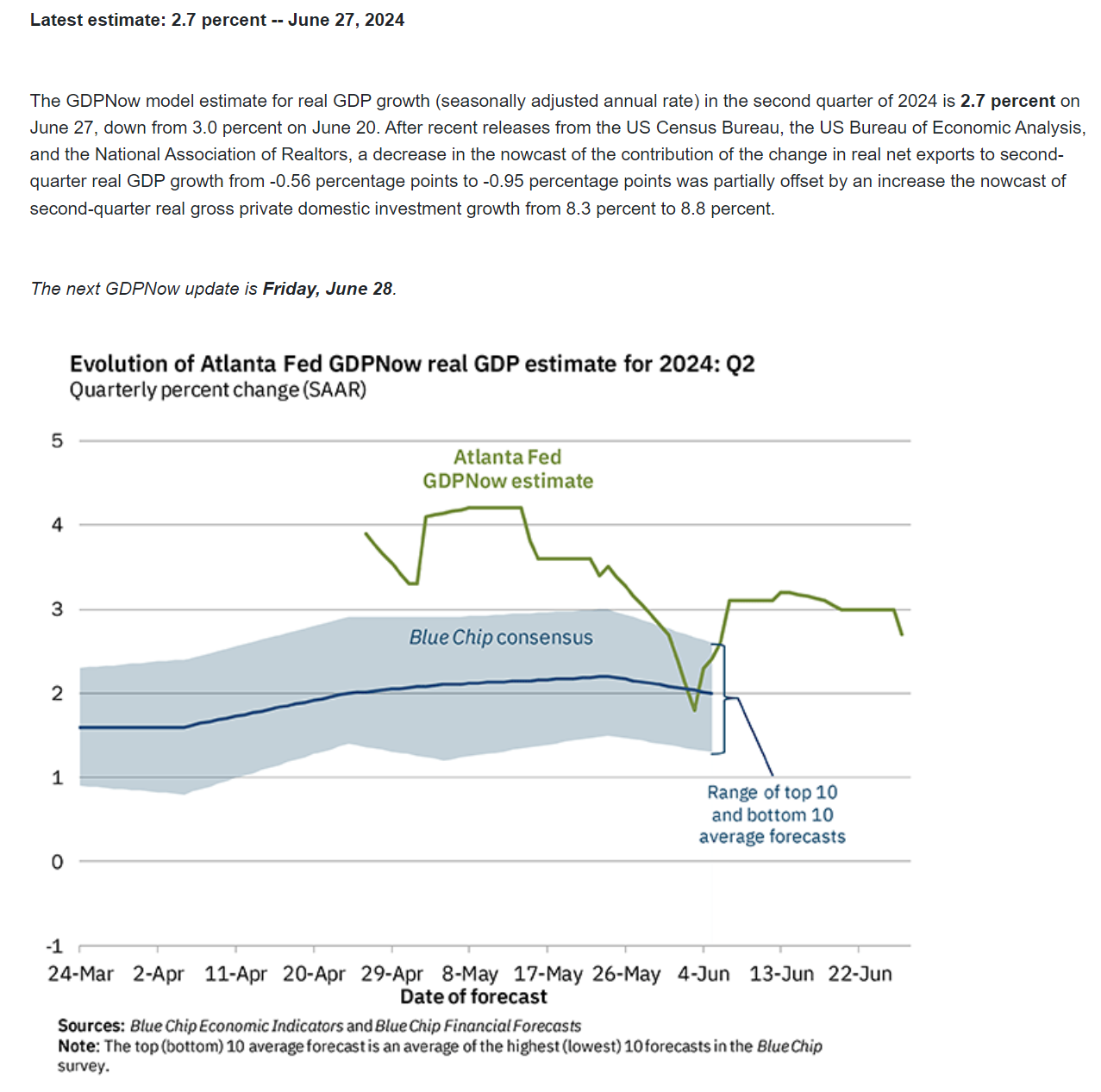 亚特兰大联邦储备银行(Atlanta Fed)的GDPNow目前对美国第二季度GDP增速的预测为2.7%,较周四数据公布前预测的3%有所下调。