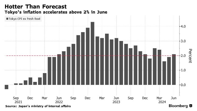 日本内务省周五报告称,不包括新鲜食品在内的东京核心消费者价格指数(CPI)同比上涨2.1%,高于5月的1.9%,超过了市场普遍预期的2%。东京的数据是反映日本全国趋势的领先指标。