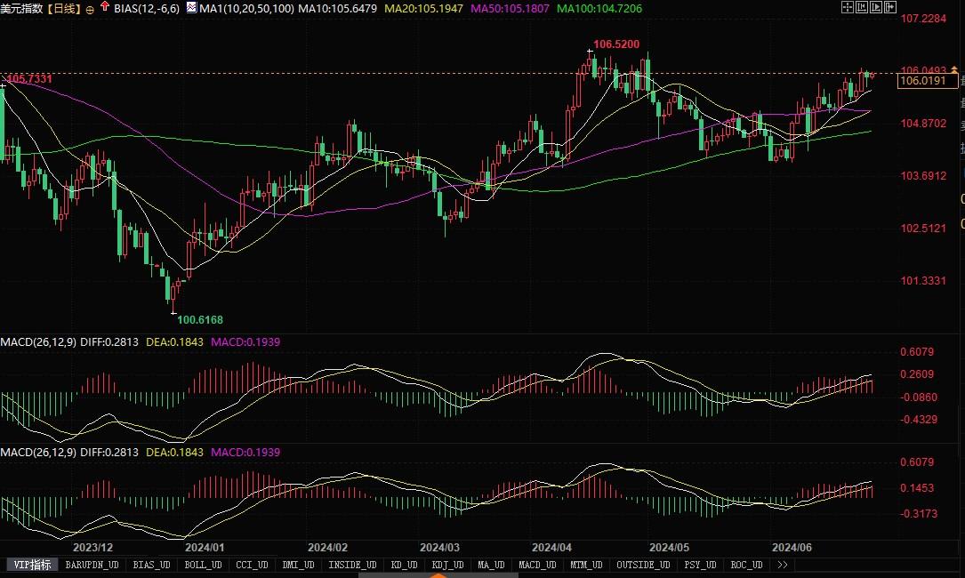美元指数日线图北京时间6月28日9:06,美元指数报106.20