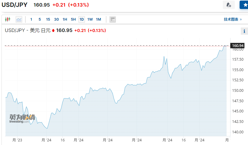 周五亚洲时段,美元兑日元一度升至161.27,续创了38年来的最高位。在上述最新官员人事任命的消息传出后,日元跌势才有所收窄。