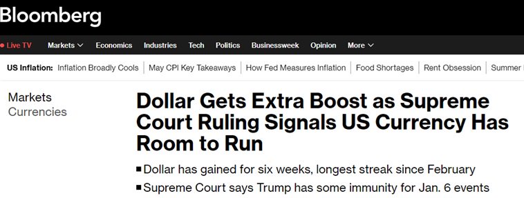 美国最高法院称特朗普拥有豁免权,交易员:需要提防美元走强