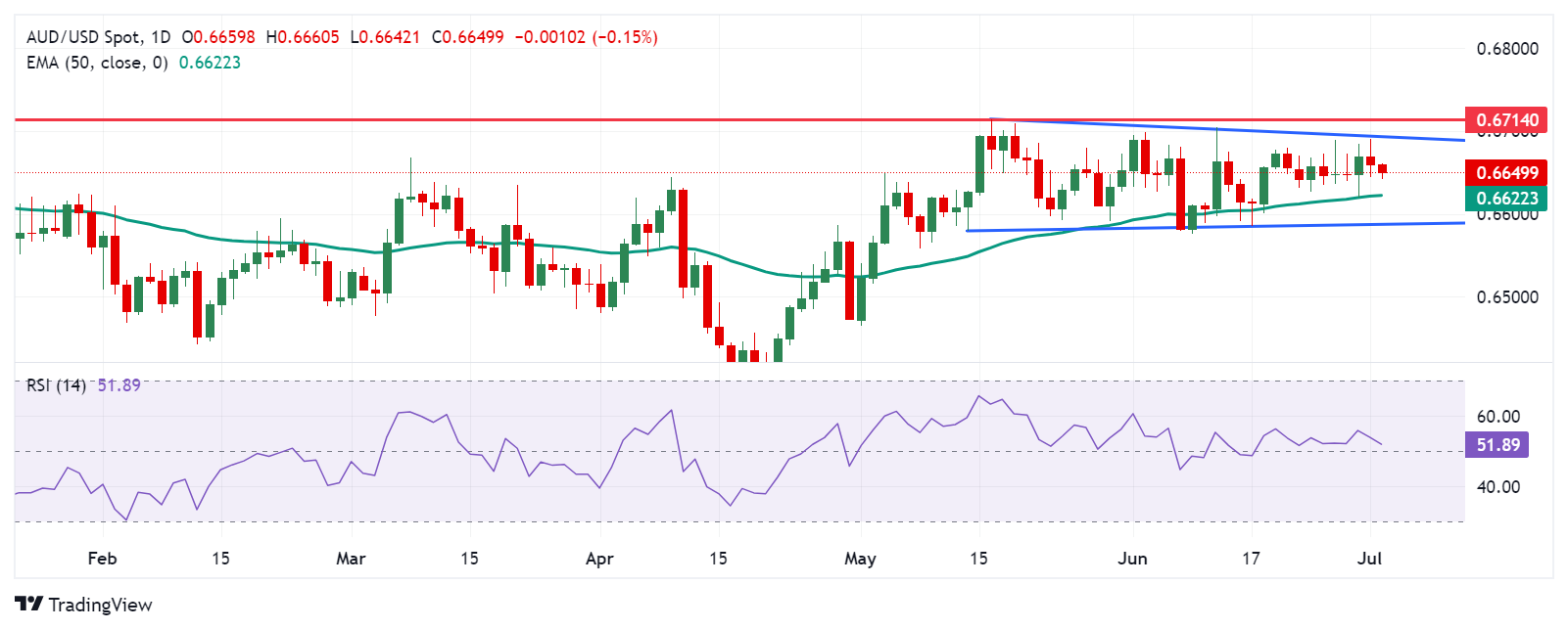 FXStreet分析师Akhtar Faruqui表示,周二,澳元/美元汇率在0.6640左右。日线图分析显示,澳元/美元对呈中性偏向,在矩形形态内盘整。14天相对强弱指数(RSI)为50,也表明势头中性,未来走势可能会提供更清晰的方向趋势。