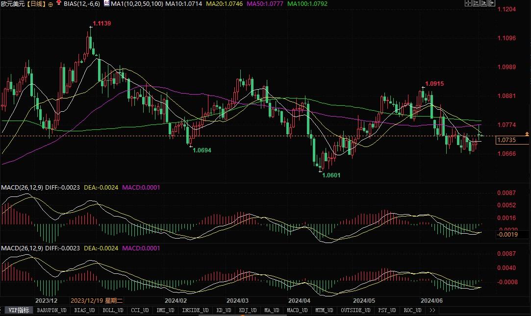 欧元兑美元日线图北京时间7月2日10:27,欧元兑美元报1.0733/34