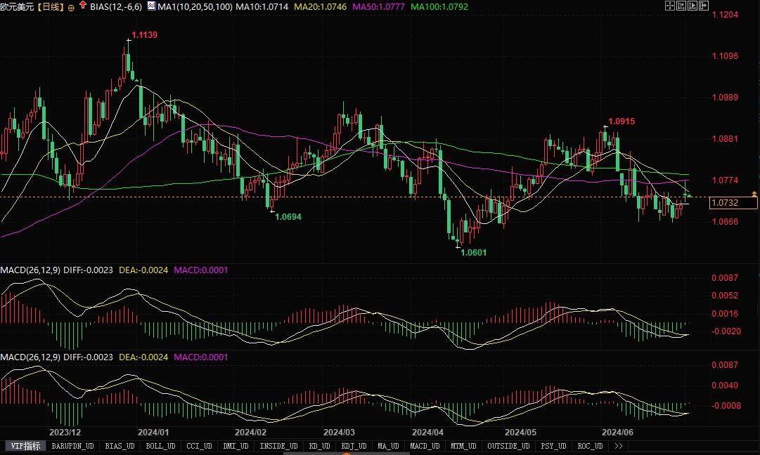 欧元兑美元日线图北京时间7月2日9:25,欧元兑美元报1.0732/33