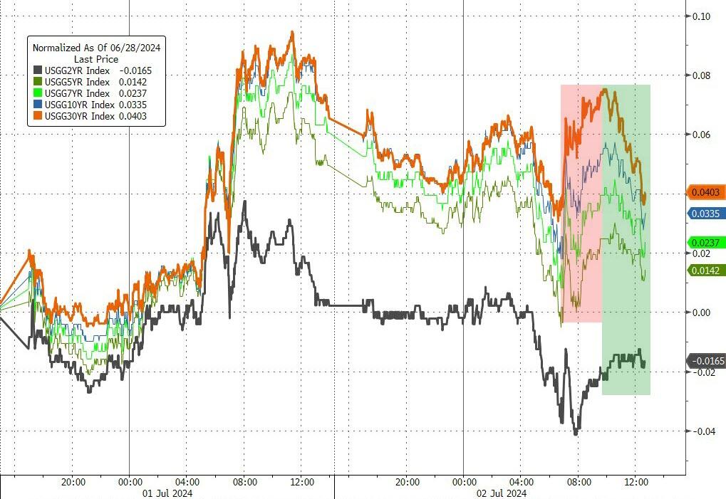 财联社7月3日讯(编辑 潇湘)美国债券市场周二暂时终结了因特朗普胜选几率大增而引发的抛售行情,基准10年期美债收益率有所回落。当天债市的企稳,很大程度上受益于了美联储方面传来的“鸽声”。展望日内,美国金融市场将因周四的独立日假期而提前收盘。消息面上,周四凌晨出炉的美联储纪要料将成为一大看点。