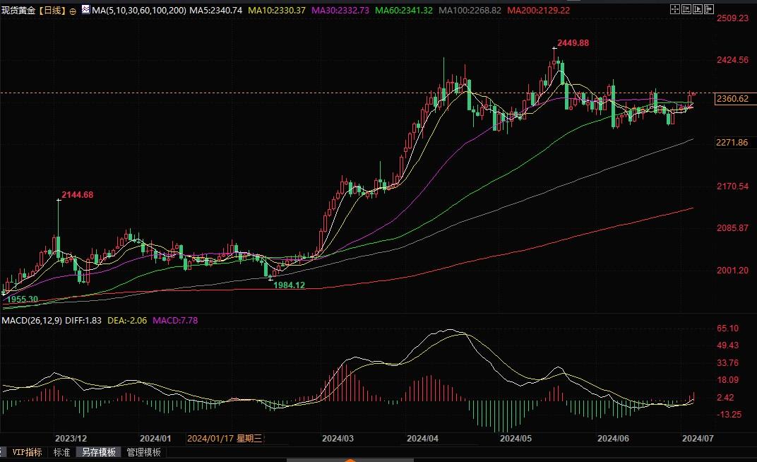 现货黄金日线图北京时间7月4日10:07,现货黄金报2360.73美元/盎司