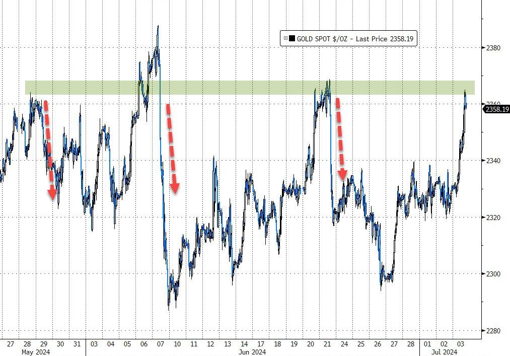 在贵金属市场上,美元隔夜的回落也令金价得以走高。现货黄金价格周三上涨超过1%,创下近两周新高,原因是近期美国数据显示劳动力市场疲软,市场对美联储9月份降息的押注增加。